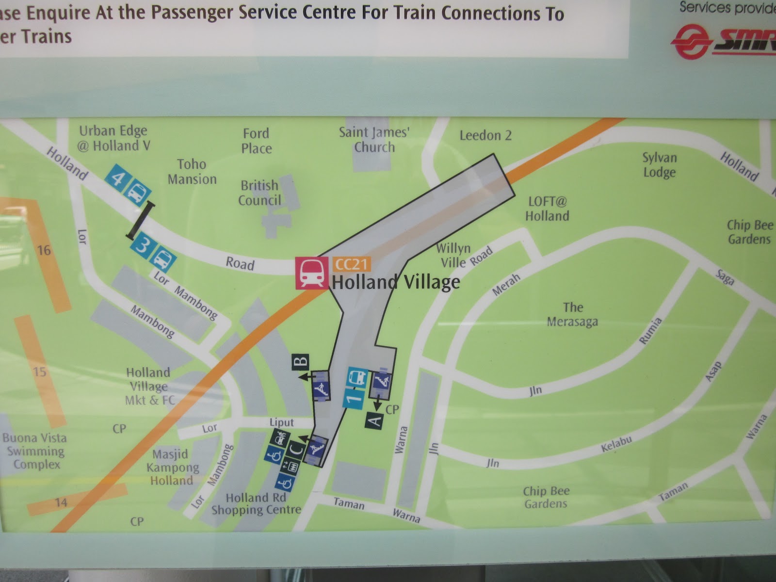 MRTでHolland Villageに行く人は、ブオナ・ビスタからサークルラインに乗り換えて1駅で到着。