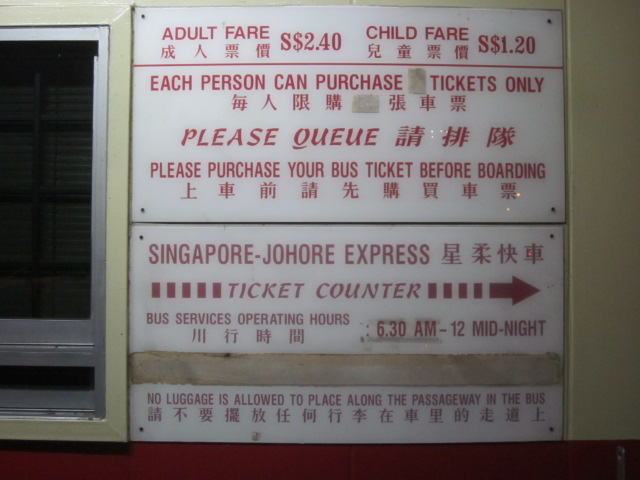3、ジョホール発のバスはシンガポール発より安く、交渉可能なので、上記3つ目の手段より安い。