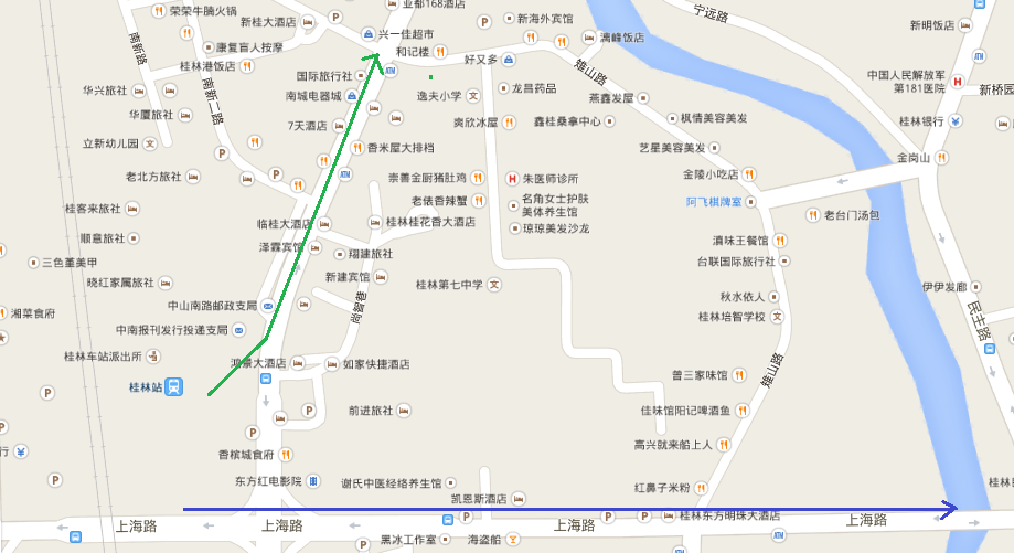 桂林は思ったより都会なイメージだが、初めて来たため街並みで地理関係を判断できない。
