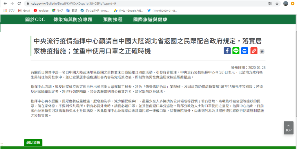 台湾の疾管署(CDC)は地方の保健局に男性の家にいくように伝え、在宅検疫を通知し署名を取った後即時実施と隔離を実施したようです。
